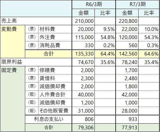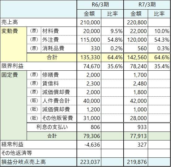 変動比率はややR7/3期の方が大きいですが、固定費は1,393千円減りましたよね。