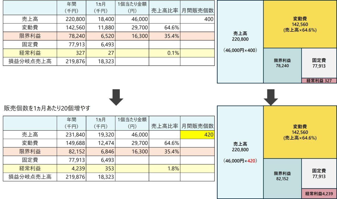 販売数を増やすことも利益を増やせますが、個数を増やすことばかりを意識して、値引きキャンペーンや長時間の残業をしてしまうと、利益を減らすことにつながってしまいます。