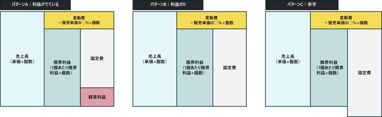 パターンAは利益が出ている状態、Bが利益が0、Cが赤字ということです。